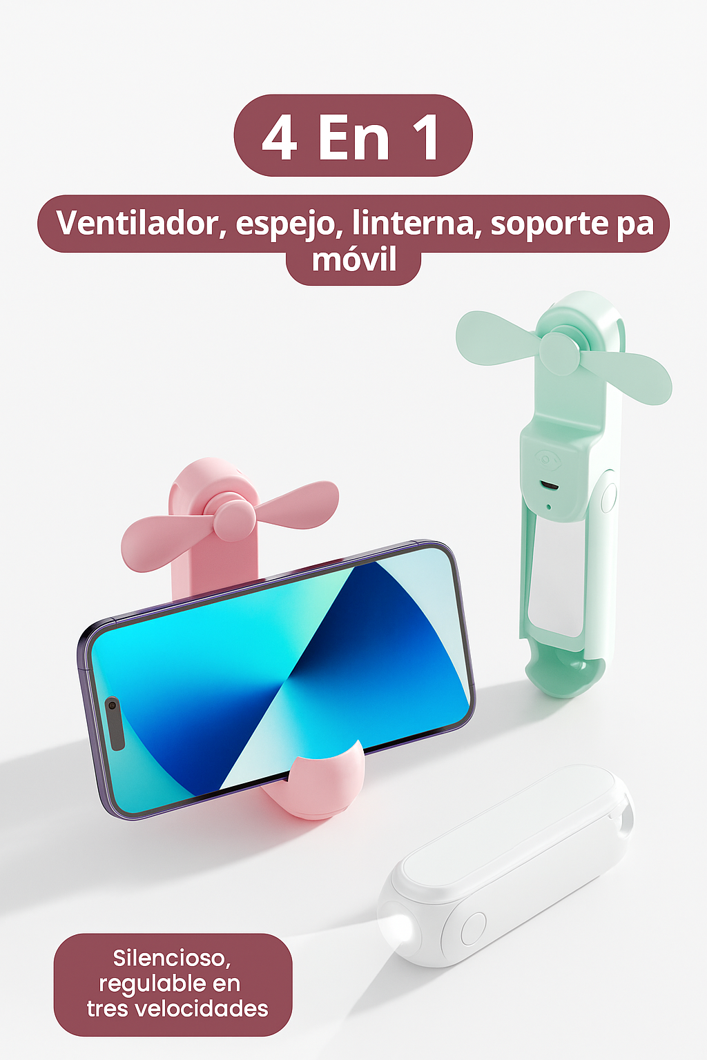 4 en 1 Banco de energía + Ventilador + Linterna + Soporte de Celular