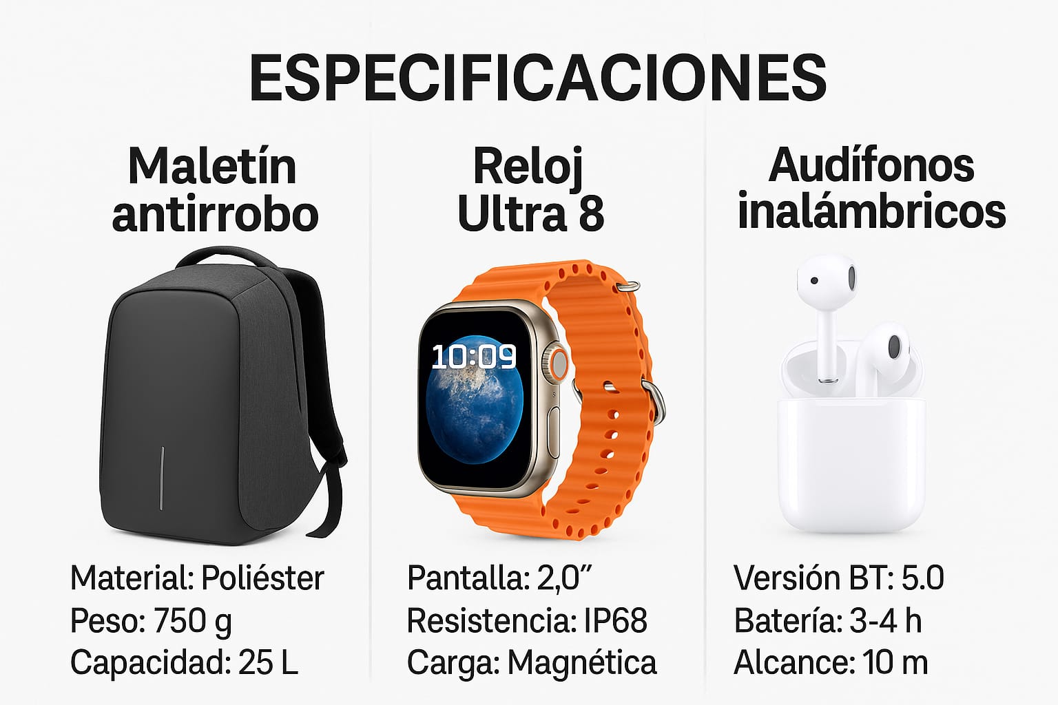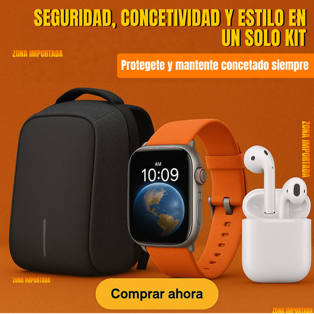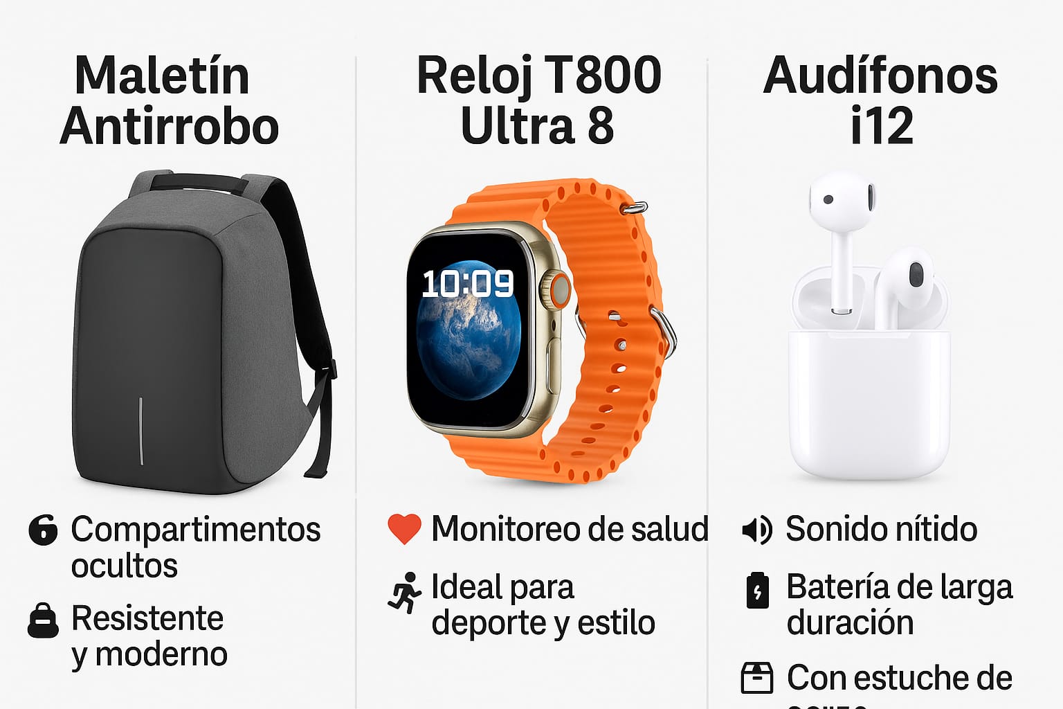 Kit Bolso Antirrobo + Smartwatch T800 Ultra + Audífonos Ultra + Cargadores