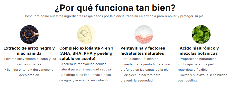 Después de un solo uso, mi piel se sintió increíblemente suave y se veía visiblemente más brillante. Eliminó toda la textura áspera alrededor de mi nariz y barbilla. ¡Me encanta que sea suave pero súper efectivo!
